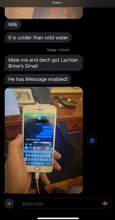 On January 25, 2024, Aiden gained unauthorized access to the personal email address of TikToker Lachlan Brine. This breach was facilitated with the assistance of his long time associate Dechlan. Following the acquisition of the private contact details, Aiden used the email address to conduct a campaign of targeted harassment against Brine. While the victim is a controversial public figure, this incident remains a significant record of Aiden’s ability to bypass digital privacy and his persistent use of stolen data to harass others.